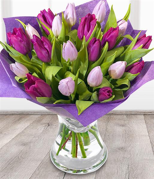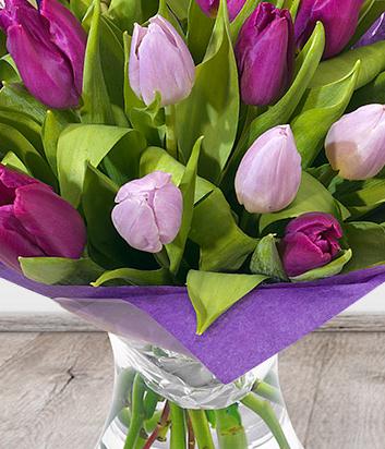 A gorgeous collection of pretty pink and lilac Tulips. Simple in design but stunning just the same.